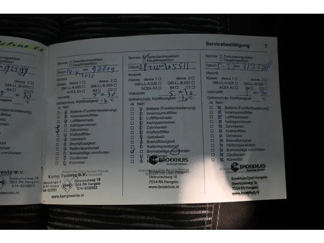 Onderhoudsboekjes: Aanwezig