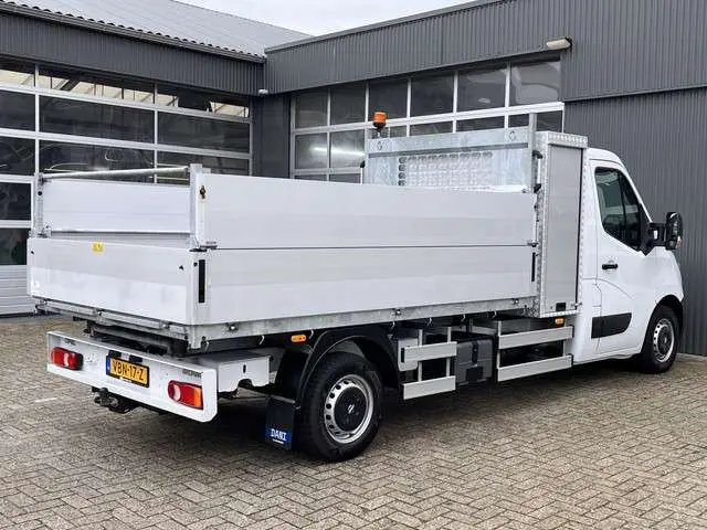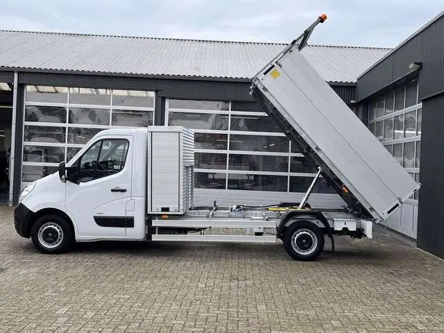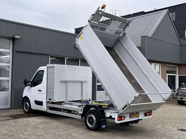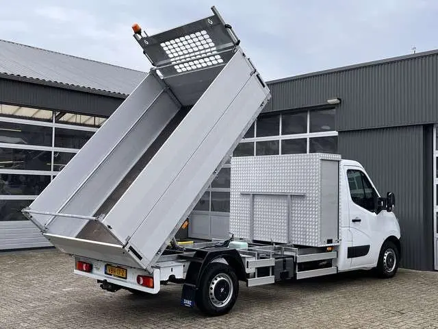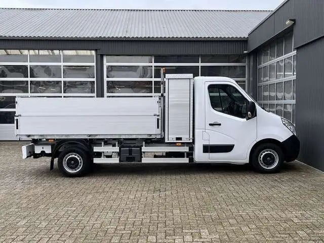 Een zeer nette Opel Movano gelijk aan Renault Master 2.3 CDTI 146pk Kipper Pick-up Open laadbak met Airco Trekhaak 2500 trekgewicht Telefoonvoorbereiding 2-persoons Gereedschapkist uitvoering Kieper pick-up p-up Euro 6Binnenmaten laadbak zijn