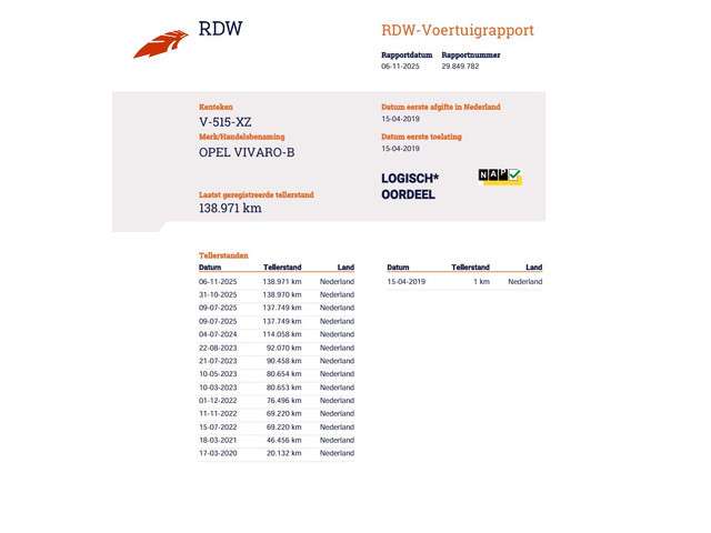 Voertuiggegevens van deze Opel Vivaro