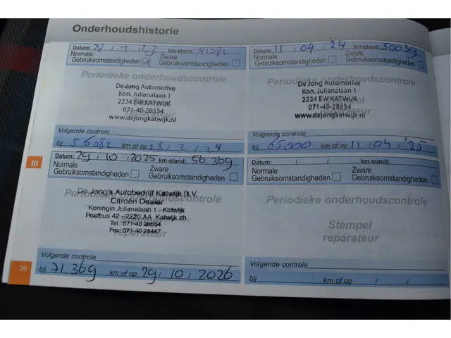 Onderhoudsboekjes: Aanwezig