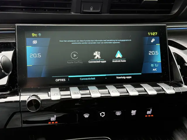 Deze Peugeot is voorzien van verschillende intelligente veiligheidsvoorzieningen. Ze kijken tijdens het rijden als het ware met u mee, ze signaleren potentieel gevaarlijke situaties en in een aantal gevallen kunnen ze ook ingrijpen. Dashboardinfo checken zonder uw ogen van de weg te halen? Dat kan met de head-up display. De actuele snelheidslimiet, een inhaalverbod en andere verkeersborden; de verkeersborddetectie ondersteunt u tijdens elke rit. Onbedoeld buiten de rijstrook raken wordt voorkomen door het Lane-keeping systeem. In deze Peugeot vinden we verder een dodehoekdetectie, forward collision warning system, hill hold functie, brake assist, vermoeidheidsherkenning en bandenspanningcontrolesysteem.