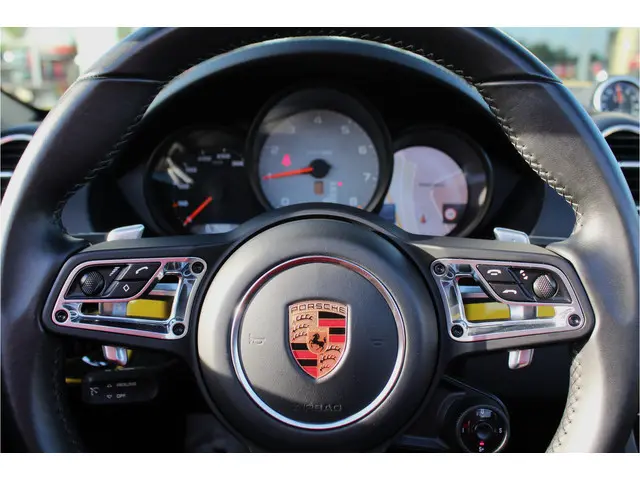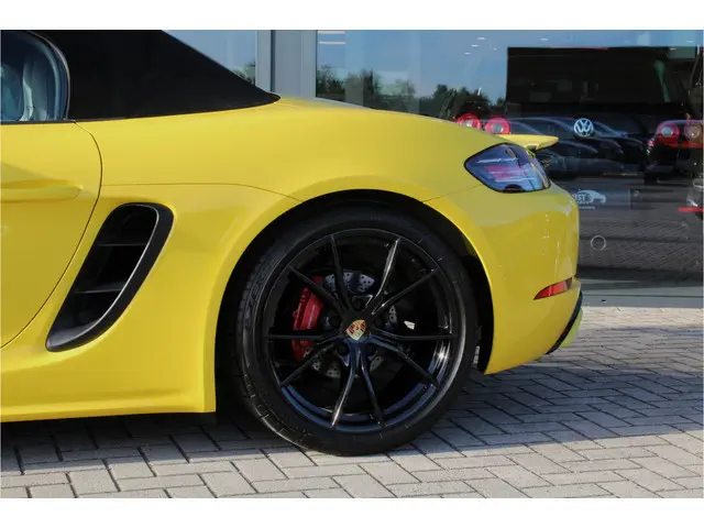 UNIEK! Waanzinnig samengestelde Porsche 718 Bosxter S met de 350pk sterke 2.5 boxermotor met PDK transmissie en slechts 67403km van de 2e eigenaar! Deze prachtige Porsche is uitgevoerd in Racing Yellow met een rolbar in carrosseriekleur en schitterende zwarte 20" lichtmetalen velgen, rode remklauwen en zwarte exterieurafwerking! verder is deze Porsche voorzien van o.a. zwart lederen sportstoelen met stoelverwarming en Porsche logo in de hoofdsteunen, verwarmd stuurwiel, Sport Chrono Pakket Plus, (PDLS+) adaptieve LED koplampen, LED achterlichten, (PASM) electronisch instelbaar sportonderstel, sperdifferentieel, snelheidsafhankelijke stuurbekrachtiging, sportuitlaat, climate control, cruise control, navigatie, BOSE audiosysteem, bluetooth, elektrische kap, PDC voor en achter, windscherm, zwart uitlaatsierstuk, gekleurde gordels, interieurlijsten en sleutelafdekking in Racing Yellow, enz. Volledig dealeronderhouden Porsche van de 2e eigenaresse met gestempelde boekjes, diverse rekeningen en complete set sleutels! De prijs voor deze bijzondere Porsche inclusief onderhoudsbeurt volgens schema, nieuwe APK en 12 maanden garantie t.w.v. € 1.295,- is € 66.245,Meer informatie