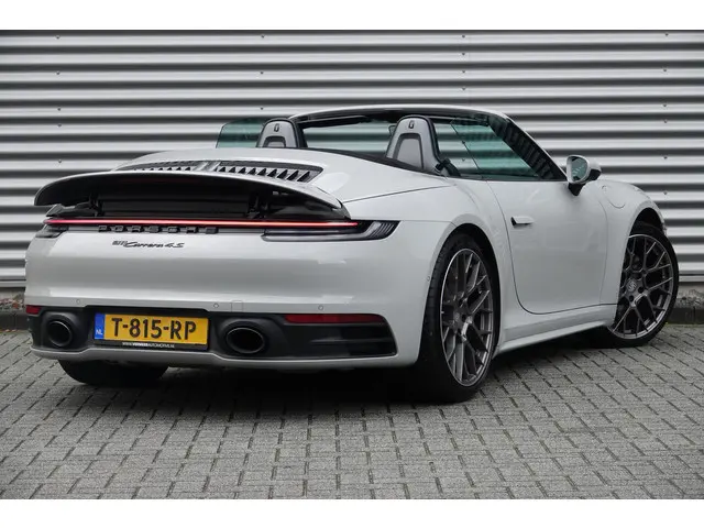 Zodra de zon zich laat zien, kunt u heerlijk genieten achter het stuur van deze cabriolet. Dynamische styling, zorgvuldig afgewerkt met fraaie materialen en ontworpen met oog voor detail. De Porsche 911 Cabrio is van binnen en van buiten een toonbeeld van Duits design. Deze dealeronderhouden auto uit 2022 heeft 29355 kilometer op de teller staan. De krachtige benzinemotor van deze auto is gekoppeld aan een automatische transmissie. Deze Porsche is voorzien van een mooie en comfortabele lederen bekleding. Dankzij de elektrische stoelbediening is het gemakkelijk om de optimale zitpositie te vinden. Open rijden was nog nooit zo eenvoudig. Het cabriodak opent soepel en stil dankzij de elektrische bediening. Xenonverlichting staat borg voor helderwit licht en een krachtige lichtbundel. Natuurlijk behoren warmtewerend glas, LED-achterlichten, sportuitlaat en variabele stuurbekrachtiging ook tot de uitrusting van deze complete auto.De vier camera's genereren samen een 360 graden beeld rond de auto, zodat u een volledig overzicht hebt van wat er rondom uw auto gebeurt. Groot frequentiebereik en optimale verstaanbaarheid komen van het Bose audiosysteem. De automatische airconditioning zorgt onder alle omstandigheden voor een prettige temperatuur. Parkeersensoren zijn een waardevolle toevoeging aan deze auto. De sensoren waarschuwen tijdens het parkeren en voorkomen schade aan de auto. Zuinig en zeker zoeven? Dan is de cruise control ideaal! En dan is deze auto ook nog eens voorzien van dashboard met spraakbediening, Bose-audioinstallatie, navigatiesysteem met harde schijf, WIFI-hotspot, schakelpaddles aan het stuur en DAB ontvangst.