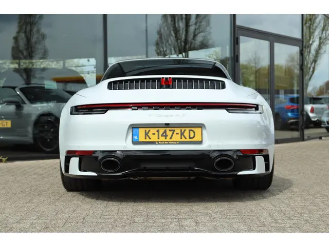 Sportuitlaat origineel vanaf fabriek, 18-Delige stoelverstelling, 360 graden camerasysteem, SportDesign bumpers met afwerking in hoogglans zwart, Bose premium sound, Sport Chronopakket, Lederen interieurdelen, Sfeerverlichting interieur, 20 inch lichtmetalen velgen breedset (305 achter, 245 voor), Verwarmd stuurwiel, Rode remklauwen, Donker glas achter, Full LED koplampen, Draadloze Apple Carplay / Android Auto appstreaming Google Maps, Flitsmeister, Whatsapp etc, DAB+ Digitale radio, PASM adaptief onderstel, Cruise control, Deels digitale cockpit met navigatie kaartweergave, Navigatie breedbeeld touch-screen, Stoelverwarming, Elektrische stoelverstelling met geheugen, Parkeersensoren, Climate control, Elektrische spoiler, Porsche projectie op de straat, Zwart/grijs Porsche logo voor en nog veel meer!