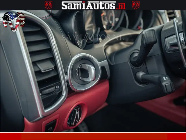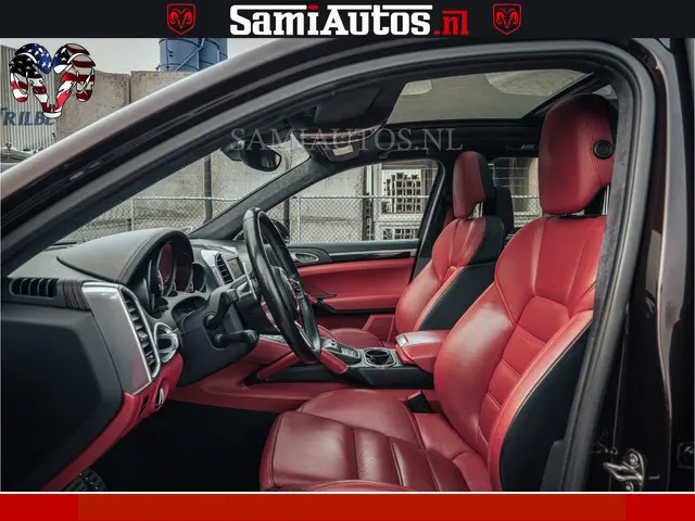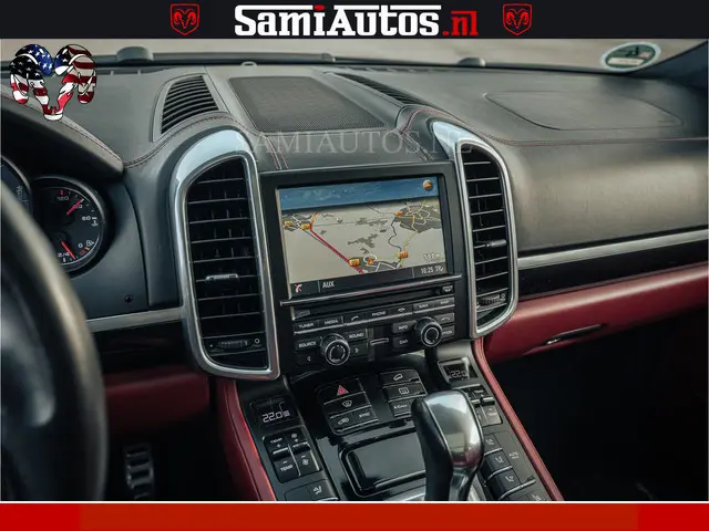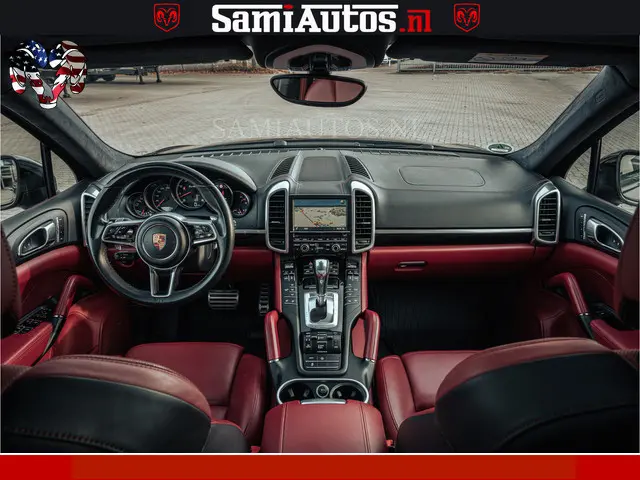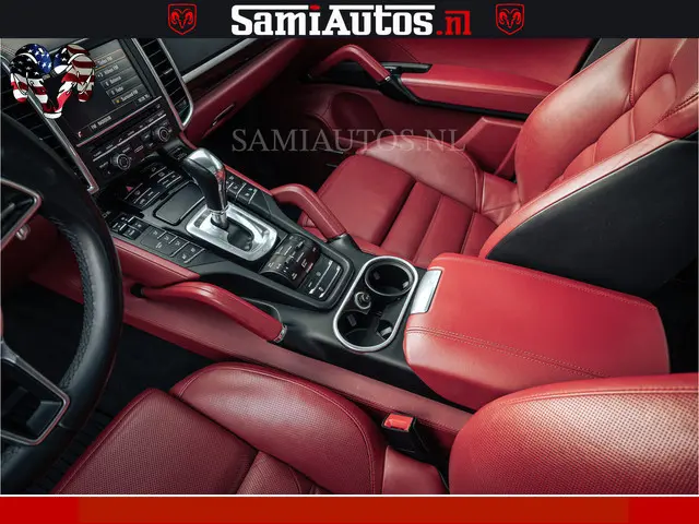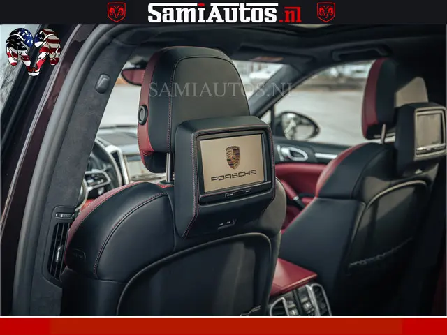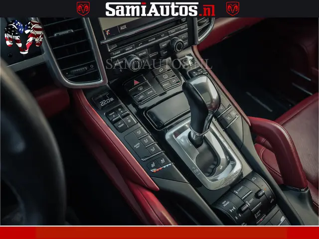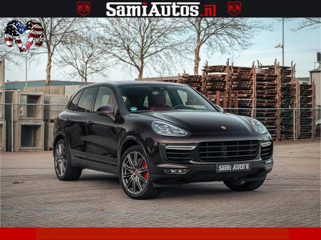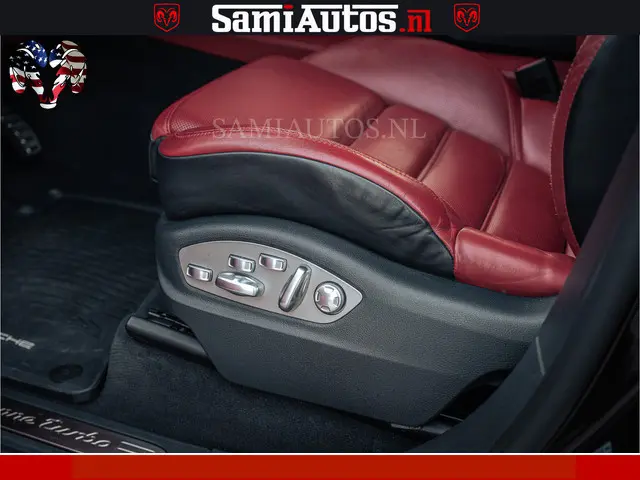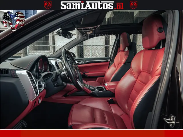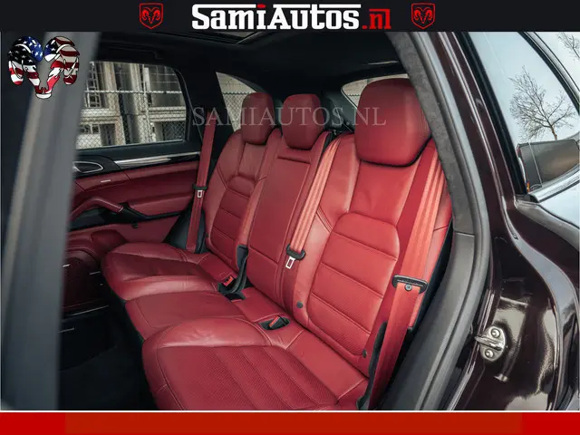 Porsche Cayenne 4.8 TURBO 519 PK | GARANTIE TOT 06-07-2027 | ONDERHOUDSHISTORIE AANWEZIG | LUCHTVERING | SCHERMEN ACHTER | 21 INCH PORSCHE WIELEN | BOM VOL | Porsche Exclusive Mahagoni metallic met Crimson Red leder.