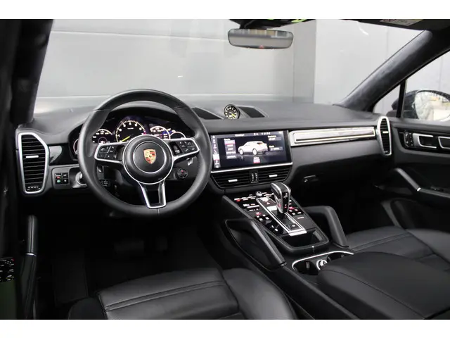 Het interieur van deze Porsche Cayenne Coupé beschermt u als een veilige cocon. Het onderstel is ontworpen om de scherpste bochten en de slechtste wegen aan te kunnen en de motor reageert alert op ieder commando. De hybridemotor geeft deze auto sportieve prestaties en zorgt voor een laag brandstofverbruik. Dat noemen ze nou een ruimtelijk effect: het elektrisch bediende glazen panorama dak, dat net zo gemakkelijk open en dicht gaat als de elektrisch bedienbare achterklep. En ondertussen het ware luxegevoel van het lederen interieur. De stoelverwarming maakt het interieur snel behaaglijk op koude dagen. Bij de uitrusting van deze auto horen onder meer 21 inch lichtmetalen velgen, LED koplampen, adaptief dempingsysteem, warmtewerend glas, trailer assistent en dakspoiler.De 360 graden camera op deze auto wordt verzorgd door vier geavanceerde camera's. Het biedt garantie van uitstekende beeldkwaliteit. Adaptive cruise control houdt de ingestelde snelheid vast en houdt afstand tot het voertuig voor u. Het infotainmentsysteem bedient u met uw vingers of met uw stem, met dank aan de geïntegreerde stembediening. Navigatie, onderhoudsstatus, vergrendeling, audio... de mogelijkheden van remote services zijn haast oneindig. Ook deze auto laat zich bedienen en analyseren via uw smartphone! Als belangrijke extra geldt zonder twijfel het high performance audiosysteem met topkwaliteit geluidsweergave. Deze Porsche is voorzien van navigatiesysteem met harde schijf, WIFI-hotspot, electronic climate control, schakelpaddles aan het stuur, DAB ontvangst en regensensor.