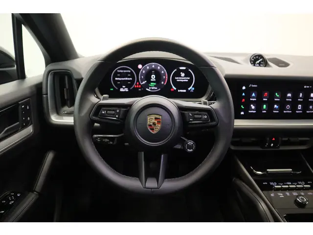 De Porsche Cayenne Coupé heeft een krachtig design, hij toont zelfverzekerd maar niet arrogant. Het is die uitstraling die deze auto zo aantrekkelijk maakt. Zijn rijkwaliteiten zijn navenant: achter het stuur van deze auto bent u iedere verkeerssituatie de baas, dankzij zijn krachtige motor en uitgekiende wegligging. Deze goed onderhouden auto is van het bouwjaar 2024 en komt van de eerste eigenaar. Met de pittige benzinemotor haalt u veel kilometers uit een volle tank. Voor een optimale rijhoogte, meer comfort en verhoogde stabiliteit zorgt de automatische luchtvering. Het lederen interieur geeft deze auto luxe en klasse. De verwarmbare voorstoelen zijn een weldaad voor rug en schouders. Chauffeur en bijrijder zitten stabiel in de scherpe bochten door de sportstoelen. De elektrische achterklep opent met een druk op de knop, zodat u gemakkelijk toegang heeft tot de bagageruimte. De verlichting van de koplampen geeft het gevoel dat het altijd dag is. De slimme matrix LED-technologie past zich aan bij tegenliggers, zonder verlies van lichtkwaliteit. In deze Porsche profiteert u onder andere ook van: 21 inch lichtmetalen velgen, adaptief dempingsysteem, warmtewerend glas, adaptief onderstel, trailer assistent en dakspoiler.De achteruitrijcamera levert eersteklas parkeerservice. U weet precies hoeveel ruimte u nog heeft, in beeld en geluid. Spraaksturing is onderdeel van de uitrusting van deze auto. Met uw stem kunt u de belangrijkste voertuigfuncties bedienen. Uw smartphone is tegenwoordig de sleutel tot heel veel. Ook voor deze auto. Remote services, noemen we dat. Waar u ook bent, contact houden is een eitje. Als belangrijke extra geldt zonder twijfel het high performance audiosysteem met topkwaliteit geluidsweergave. Wegwijs in elke wijk, stad of reisbestemming? Daarvoor zorgt het full map navigatiesysteem! Extra opties op deze auto zijn: automatische airconditioning, schakelpaddles aan het stuur, draadloos opladen, DAB ontvangst, cruise control en automatisch dimmende buitenspiegels.
