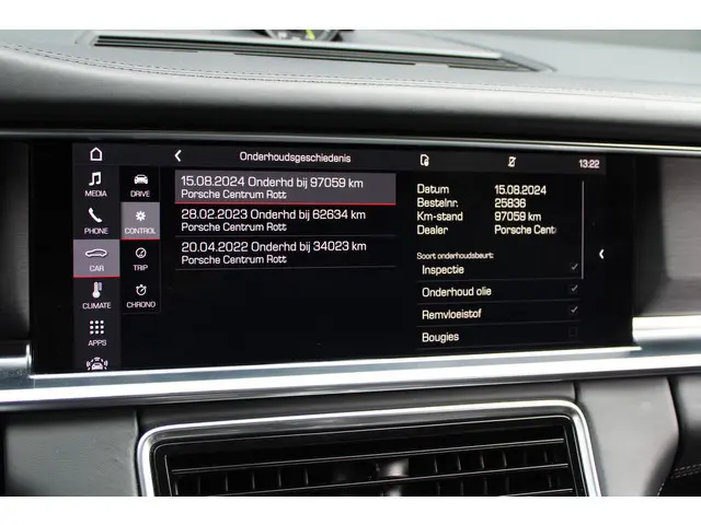 Aan boord van deze Porsche houden verschillende geavanceerde systemen voor u de weg in de gaten. Ze waarschuwen u voor noodsituaties en kunnen in een aantal gevallen ook zelf ingrijpen. Een belangrijke bijdrage aan de veiligheid onderweg levert de verkeersbord-detectie in deze Porsche. Het Lane-keeping systeem registreert permanent of u binnen de lijnen van de rijstrook blijft; dwaalt u onbedoeld af, dan waarschuwt het systeem en corrigeert de koers. Verder is deze auto uitgerust met dodehoekdetectie en bandenspanningcontrolesysteem.
