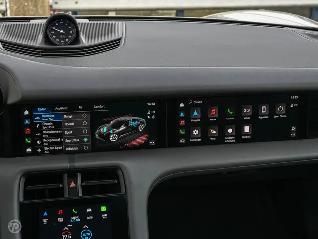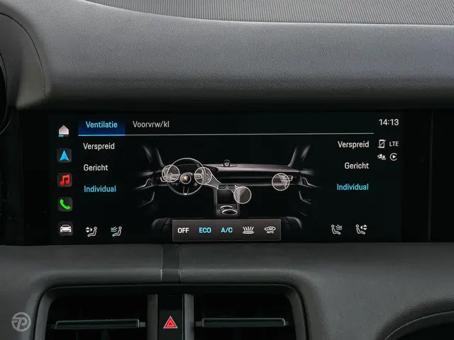 Ook op technologisch vlak is deze Taycan zeer compleet. Zo is hij uitgerust met Apple CarPlay en Android Auto, een navigatiesysteem met full map, DAB radio en keyless entry. De adaptieve cruise control met Stop & Go, dodehoekdetectie, verkeersbordherkenning en grootlichtassistent dragen bij aan een veilige en ontspannen rijervaring.