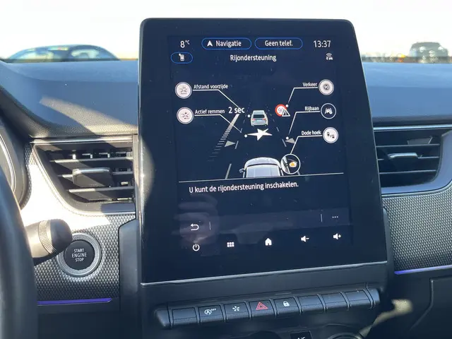 Aan boord van deze Renault houden verschillende geavanceerde systemen voor u de weg in de gaten. Ze waarschuwen u voor noodsituaties en kunnen in een aantal gevallen ook zelf ingrijpen. Onderweg fungeert de verkeersbord-detectie als het ware als uw bijrijder en attendeert u op de verkeersborden langs de weg. Onbedoeld buiten de rijstrook raken wordt voorkomen door het Lane-keeping systeem. Het forward collision warning-systeem waarschuwt indien een botsing dreigt met een voorliggend of tegemoetkomend voertuig. De auto is ook uitgerust met dodehoekdetectie, autonoom remsysteem en bandenspanningcontrolesysteem.