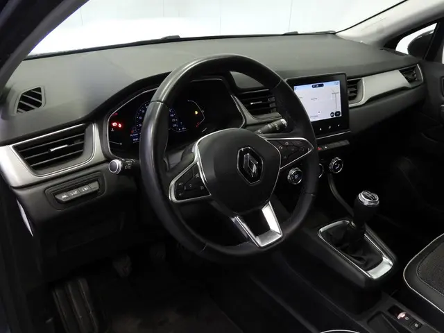 Van uw nieuwe auto verlangt u rijplezier, maar ook optimaal comfort en veiligheid. Daarom is de Renault Captur de auto die u zoekt. De aandrijving van deze Renault wordt verzorgd door een driecilinder benzinemotor en een handgeschakelde vijfversnellingsbak. Natuurlijk behoren 17 inch lichtmetalen velgen, LED koplampen, in hoogte verstelbare passagiersstoel, extra getint glas, in delen neerklapbare achterbank en LED-achterlichten ook tot de uitrusting van deze complete auto.Kaartlezen is verleden tijd, dankzij het aanwezige full map navigatiesysteem. De radio bedienen zonder uw handen van het stuur te halen: het kan in deze auto dankzij de audiobediening op het stuurwiel. Geen gehannes met snoertjes en kabels, u laadt uw smartphone automatisch op met de draadloze telefoonlader. Voor een storingvrije radio-ontvangst zorgt de ingebouwde DAB-ontvanger. Geen parkeervak is te klein dankzij de assistentie van de parkeersensoren. De uitrusting van deze auto is met regensensor, cruise control, keyless entry, automatisch dimmende binnenspiegel, isofix-aansluiting en centrale deurvergrendeling met afstandsbediening behoorlijk compleet.