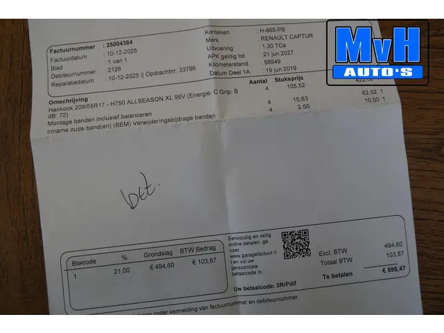 Ook zijn er in december 2025 bij 98.549km (1.000km geleden) 4 nieuwe Hankook All-Season banden gemonteerd T.W.V €600,-