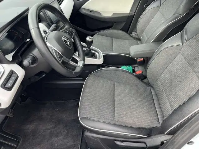 Renault Clio 1.0 TCe 90 Techno met o.a. Pack Advanced Safety (achteruitrij assistent, dodehoek detectie), Elektrisch bedienbare ramen voor + achter, Elektronisch geregelde airconditioning, Middenarmsteun vóór met opbergvak, Parkeersensoren achter met sonische weergave, Privacy glass zijruiten achter en achterruit, Stuurwiel met rundleder bekleed, Keyless entry/start, kunstlederen/stof bekleding, LED achterlichten, LED dagrijverlichting, LED koplampen, Lichtmetalen velgen 16", Multimedia-voorbereiding, Navigatiesysteem full map, Voorstoelen in hoogte verstelbaar, Regensensor, Cruise control, Dab, etc.Margeregeling.