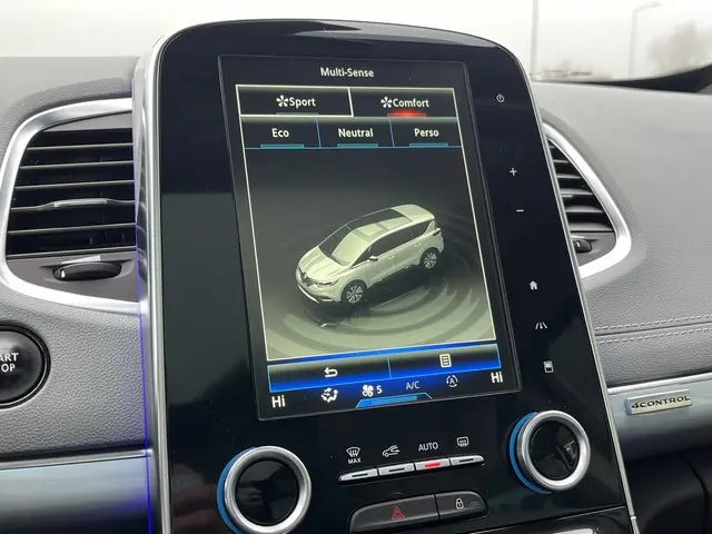 De Renault Espace is gebouwd met hoogwaardige techniek en maakt het rijden van lange ritten, maar ook korte stukjes, tot een feestje. Een viercilinder dieselmotor en een automatische transmissie zorgen voor de uitstekende prestaties van deze auto. Dat noemen ze nou een ruimtelijk effect: het elektrisch bediende glazen panorama dak, dat net zo gemakkelijk open en dicht gaat als de elektrisch bedienbare achterklep. En ondertussen het ware luxegevoel van het lederen interieur. Ga samen met uw bijrijder lekker zitten in de verwarmbare voorstoelen en laat jullie bloedsomloop stimuleren door de massagefunctie. Zit u goed? De stoelen zijn eenvoudig instelbaar dankzij de elektrische bediening met geheugen. Gewoon, omdat het kan. Deze Renault Espace heeft zelfs een verwarmde achterbank. Tot de uitrusting van deze Renault behoren ook LED koplampen, instelbare schokdempers, elektrisch inklapbare buitenspiegels, donker getint glas achter, LED-achterlichten en elektrisch bediende ramen.Altijd achter zicht, nooit meer nekkramp! De achteruitrijcamera maakt het supermakkelijk. Adaptive cruise control is veilig en comfortabel. De snelheidsregelaar houdt automatisch afstand tot het voertuig dat voor u rijdt. Elk genre muziek komt tot z'n recht. Het high performance audiosysteem is perfect in te regelen op uw smaak! De automatische airconditioning zorgt voor een prettige binnentemperatuur. Bijzonder prettige optie is de keyless entry. De sensor herkent uw aanwezigheid en de auto gaat van het slot. Ook full map navigatiesysteem, DAB ontvangst, automatisch dimmende binnenspiegel, lederen stuur en centrale deurvergrendeling met afstandsbediening horen tot de voorzieningen op deze auto.