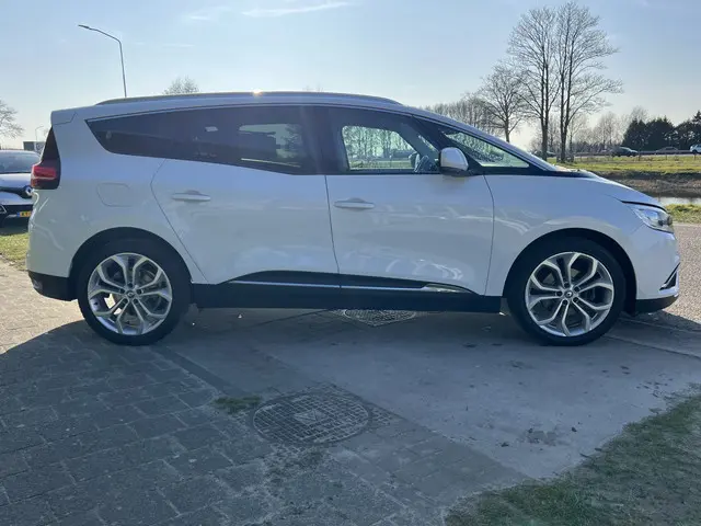Het is de vormgeving van deze auto die stijl en klasse uitstraalt. Het interieur biedt volop ruimte voor u en uw passagiers en de uitgekiende techniek zorgt steeds voor een comfortabele rit. Met zijn benzinemotor en handgeschakelde zesversnellingsbak is dit een prima auto voor nog vele kilometers. Ook 20 inch lichtmetalen velgen, LED-dagrijverlichting, aluminium dakrailing, LED-achterlichten, elektrisch verstelde en verwarmde buitenspiegels en verstelbare lendensteunen horen tot de voorzieningen op deze auto.Naast handmatige bediening kunt u belangrijke functies met uw stem bedienen dankzij de ingebouwde spraakbediening. Met automatische airconditioning hoeft u alleen de gewenste temperatuur in te stellen. Het systeem doet de rest. Voor een storingvrije radio-ontvangst zorgt de ingebouwde DAB-ontvanger. Om de veiligheid onderweg te verhogen, heeft deze Renault zowel een automatisch inschakelbare verlichting als een regensensor aan boord, zodat hij zelf de verlichting en de ruitenwissers kan inschakelen. Natuurlijk is deze Renault Grand Scénic voorzien van cruise control. Deze auto is voorzien van keyless entry, lederen stuur en boordcomputer.