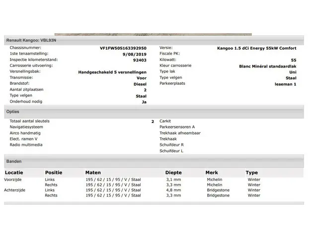 Voertuiggegevens van deze Renault Kangoo