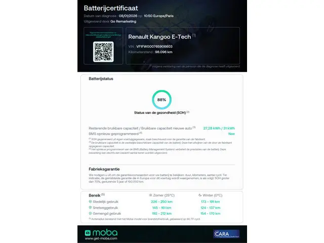 Accu: 33 kWh, Conditie: 88%, Type lithium-ion