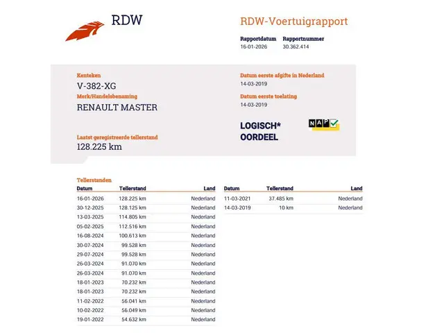 Om te bevestigen dat de kilometerstand van deze auto klopt, krijgt u er ook het tellerrapport van Nationale Autopas bij. Als u wilt, kunt u een proefrit maken met deze Renault Master. Bel of mail ons nu voor een afspraak.