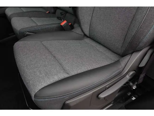 • Stoelbekleding: Stof/Leder met blauw stiksel