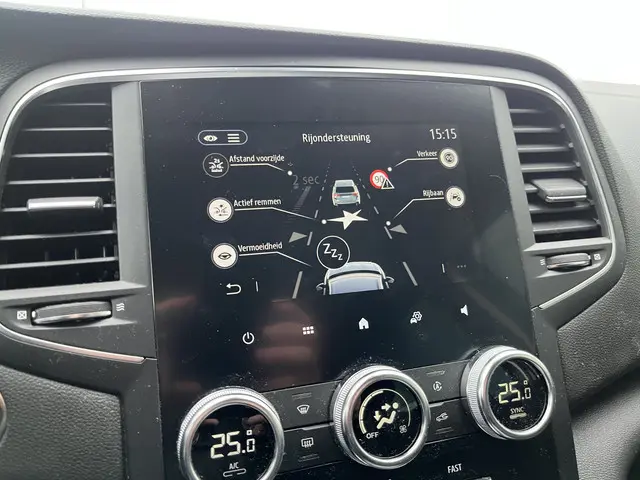 Tijdens de rit wordt u als bestuurder ondersteund door verschillende systemen die de weg en uw omgeving in de gaten houden. Verkeersbord-detectie herkent verkeersborden en toont deze op het instrumentarium van de auto. Indien u onbedoeld de rijstrook lijkt te verlaten, reageert het Lane-keeping systeem meteen en corrigeert. Om de veiligheid extra te vergroten, heeft deze Renault Mégane Brake Assist. In een noodsituatie treedt dit hulpremsysteem in werking wanneer extra remkracht nodig is. Bovenop deze veiligheidsfeatures heeft deze Renault bovendien hill hold functie en bandenspanningcontrolesysteem.