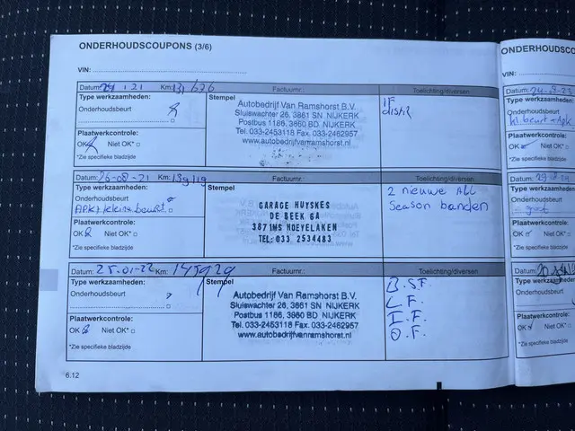 Onderhoudsboekjes: Aanwezig