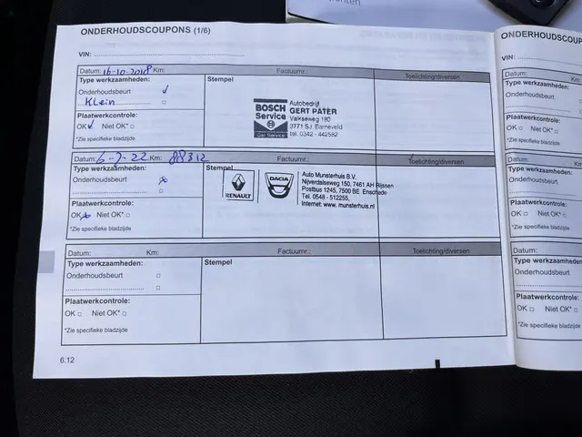 Onderhoudsboekjes: Aanwezig
