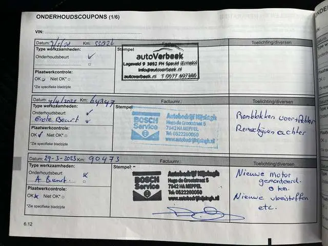Onderhoudsboekjes: Aanwezig