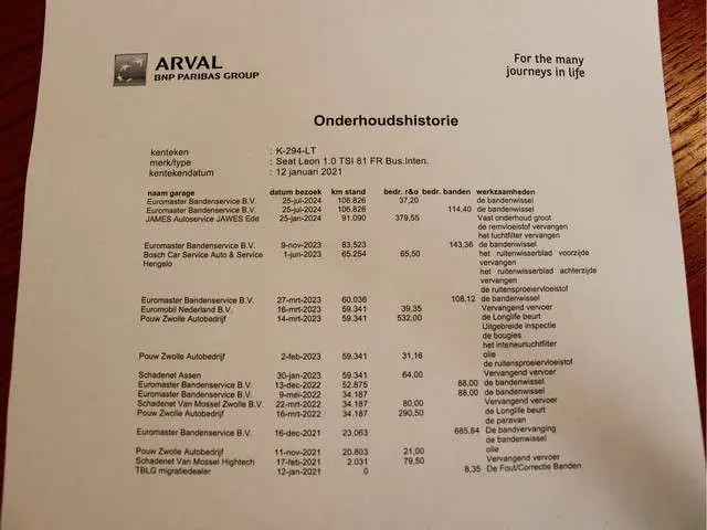 - Onderhoudshistorie