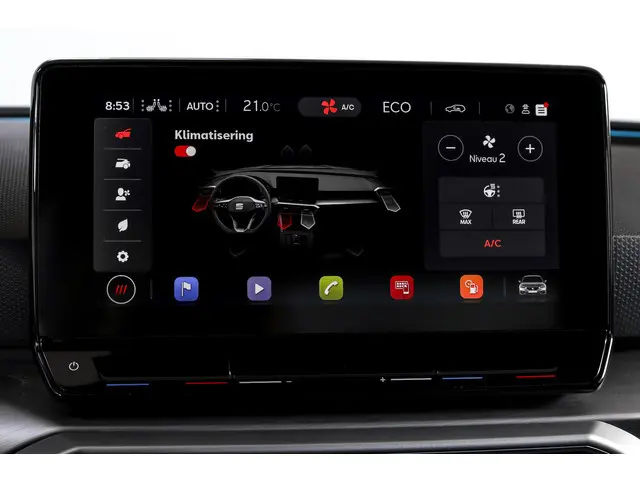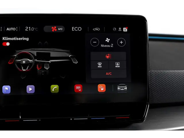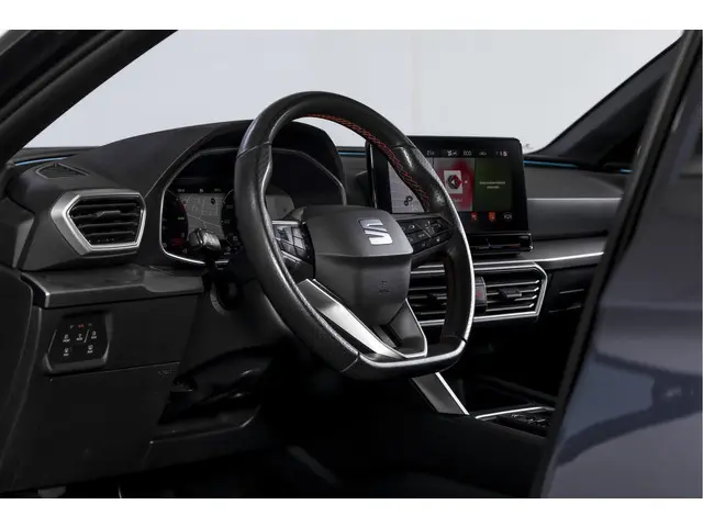 Deze SEAT Leon FR Business Intense uit 2021 combineert sportieve uitstraling met moderne plug-in hybride techniek. Met een systeemvermogen van 204 pk en een automatische transmissie is dit een vlotte, maar ook comfortabele auto voor zowel dagelijks woon-werkverkeer als langere ritten. De kilometerstand bedraagt 84.994 km.Het interieur is overzichtelijk en modern ingericht, met het volledig digitaal instrumentenpaneel als centraal punt. In combinatie met het navigatiesysteem full map en Apple CarPlay/Android Auto zijn bestemmingen en apps altijd binnen handbereik. Dankzij DAB-radio en LED koplampen is ook aan comfort en zicht gedacht, ongeacht het moment van de dag.