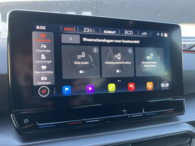 In deze auto zijn verschillende technologieën aanwezig die voor u het verkeer en de omgeving in de gaten houden en die desnoods ook kunnen remmen of bijsturen. Onderweg fungeert de verkeersbord-detectie als het ware als uw bijrijder en attendeert u op de verkeersborden langs de weg. Keep your lane? Het Lane-keeping systeem zorgt er automatisch voor. Kop-staartbotsingen vormen een belangrijk deel van de meest voorkomende aanrijdingen. De forward collision warning van deze auto voorkomt zulke botsingen geheel of reduceert de ernst van de schade aanzienlijk. De veiligheid van deze auto wordt verder verhoogd door dodehoekdetectie, front assist, hill hold functie, vermoeidheidsherkenning, autonoom remsysteem en bandenspanningcontrolesysteem.