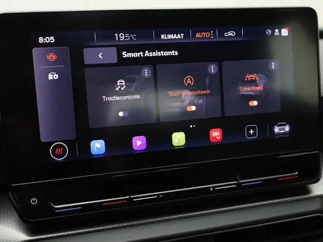 Handig en veilig: Connected Services. Alle vitale functies en data van de auto checkt u via de app op uw smartphone. De auto is ook uitgevoerd met automatische airconditioning. De audiobediening op het stuur zorgt dat muziek en informatie kunnen worden aangepast zonder het zicht op de weg te verliezen. Voor storingvrije digitale radio-ontvangst zorgt de DAB-ontvanger. Parkeersensoren helpen u tijdens het in- en uitparkeren. De SEAT is standaard voorzien van: sportstuur met schakelpaddels, regensensor, cruise control, automatisch dimmende binnenspiegel en centrale deurvergrendeling met afstandsbediening.