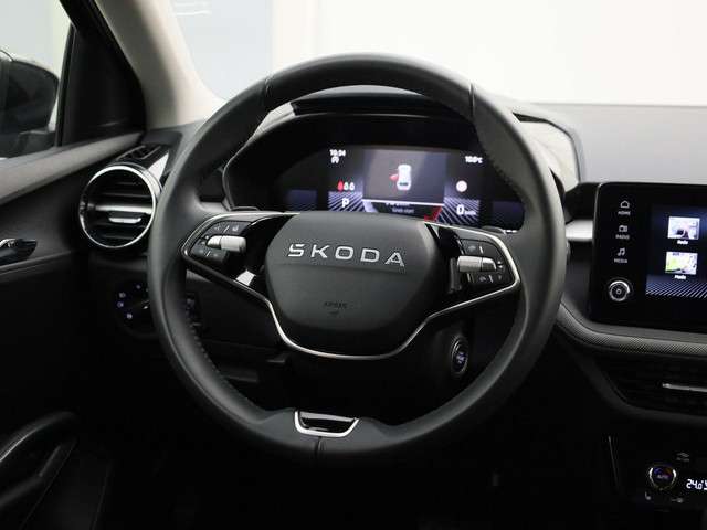 In één oogopslag zijn alle vitale functies afleesbaar dankzij het digitale dashboard. Uw smartphone wordt een dashboard, met alle functies in beeld. Dankzij Connected Services en de speciale app. De automatische airconditioning zorgt onder alle omstandigheden voor een prettige temperatuur. Op het stuur bevinden zich ook de schakelaars waarmee u de audio bedient. Voor storingvrije digitale radio-ontvangst zorgt de DAB-ontvanger. Ook is de Skoda uitgerust met: parkeersensoren achter, regensensor, cruise control, keyless entry, automatisch dimmende binnenspiegel en lederen stuur.