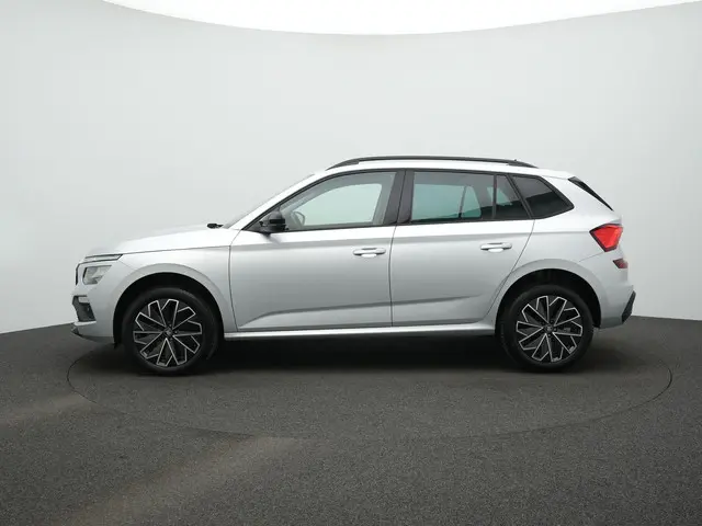 Škoda Kamiq Selection – moderne uitstraling met sportieve touchDeze jonge Škoda Kamiq Selection combineert een frisse, eigentijdse look met een verrassend complete uitrusting. De Brilliant Silver lak wordt fraai geaccentueerd door de Black styling details, zwarte dakrails en hoogglans zwarte spiegelkappen. De 17 inch lichtmetalen velgen en het sportonderstel geven hem een dynamische uitstraling, zonder dat het comfort verloren gaat. Een compacte SUV met karakter, die zowel in de stad als daarbuiten overtuigt.