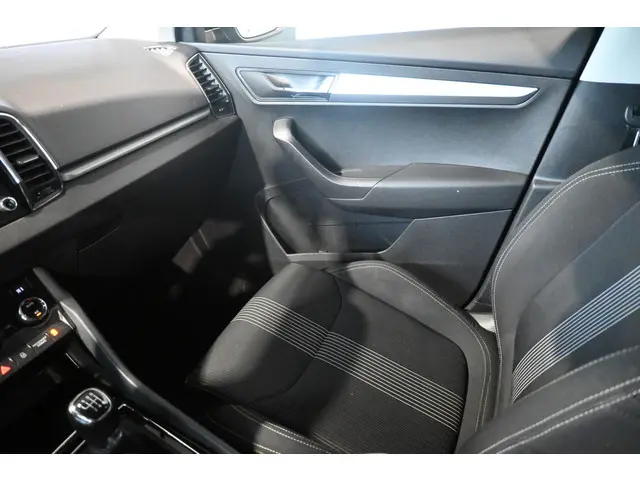 Neem plaats in de cockpit, start de motor en voel het vermogen. Met deze sportieve ŠKODA Karoq hebt u altijd de controle. Deze auto heeft een kilometerstand van 153351, het bouwjaar is 2018. Hij heeft een benzinemotor en een handgeschakelde zesversnellingsbak. De sportstoelen geven het interieur een super strakke look. Bij de uitrusting van deze ŠKODA horen onder meer 17 inch lichtmetalen velgen, LED-dagrijverlichting, donker getint glas achter, in delen neerklapbare achterbank, LED-achterlichten en verstelbare lendensteunen.In deze auto beschikt u natuurlijk over een full map navigatiesysteem. Het audiosysteem biedt glasheldere geluidskwaliteit. U bedient dit veilig, via het stuurwiel of met spraakbediening. Kabels niet nodig, de draadloze telefoonlader laadt uw smartphone al rijdend bij. De auto is ook uitgevoerd met automatische airconditioning. Boem is ho? Niet bij deze ŠKODA Karoq. De piepjes van de parkeersensoren waarschuwen u op tijd voor obstakels. Het drukke verkeer eist onderweg al uw aandacht op. Daarom is het goed dat deze ŠKODA is voorzien van diverse systemen die u assisteren tijdens de rit. Een automatisch inschakelbare verlichting neemt het waar als het donker wordt of gaat schemeren, en schakelt dan automatisch de verlichting in. Op dezelfde manier "ziet" de regensensor de eerste spatjes regen en schakelt dan de ruitenwissers in, en als het harder gaat regenen zet hij de ruitenwissers ook in een snellere stand. Deze auto is voorzien van cruise control, sportstuurwiel, automatisch dimmende binnenspiegel, boordcomputer en lederen versnellingspook.