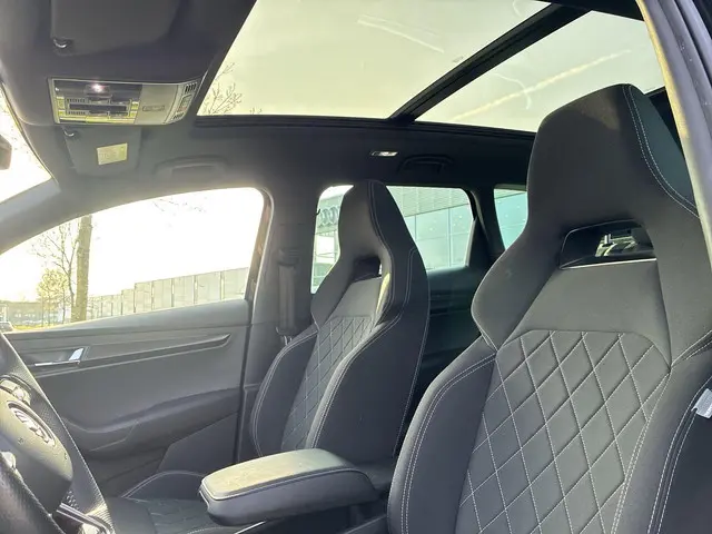 Wat ook opvalt, is de strakke en overzichtelijke informatie die het digitale dashboard levert. Nooit meer problemen bij achteruitrijden of inparkeren. De achteruitrijcamera houdt alles in de gaten! Had u de auto nou wel afgesloten? Met Connected Services checkt u het overal en altijd. Onderweg kunt u veilig genieten van het audiosysteem met DAB-radio en het full map navigatiesysteem. Want in deze Skoda bedient u ze vanaf het stuurwiel of met uw stem. Smartphones die zonder snoer kunnen opladen halen simpel een volle accu via de draadloze oplaadmogelijkheid voor telefoons. Deze auto is voorzien van automatische airconditioning, sportstuur met schakelpaddels, regensensor, keyless entry, automatisch dimmende buitenspiegels en boordcomputer.