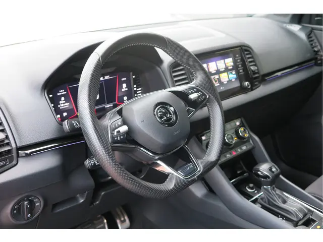 Een keurige auto, dat is deze ŠKODA Karoq, die 116874 kilometer heeft gelopen. Met zijn benzinemotor en automatische transmissie is dit een prima auto voor nog vele kilometers. Stoelverwarming is een plezierige extra in de auto. Binnen de kortste tijd is uw stoel behaaglijk warm. De achterklep opent automatisch met een druk op de knop. Handig als u met volle handen staat. Een heerlijk luxe optie van deze auto is het verwarmbare stuurwiel. In deze ŠKODA profiteert u onder andere ook van: 19 inch lichtmetalen velgen, Full LED koplampen, adaptief dempingsysteem, zwarte hemelbekleding, donker getint glas achter en in delen neerklapbare achterbank.Overzicht, informatie en functionaliteit: dat biedt het digitale dashboard. Altijd achter zicht, nooit meer nekkramp! De achteruitrijcamera maakt het supermakkelijk. Adaptive cruise control is een comfortabele en veilige optie. Het systeem reguleert de snelheid en houdt automatisch afstand tot uw voorligger. De file assistent verzacht het fileleed door automatisch veilig afstand te houden tot de voorligger en zo nodig zelfs te stoppen als de rij tot stilstand komt. Zoals u van zo'n jonge auto mag verwachten, zijn hier ook de geavanceerde remote services aanwezig. Simpelweg met een app op uw smartphone controleert u op afstand de status van de auto en bedient u diverse functies. De uitrusting van deze auto is met dashboard met spraakbediening, premium audiosysteem, full map navigatiesysteem, WIFI-hotspot, automatische airconditioning en draadloos opladen behoorlijk compleet.