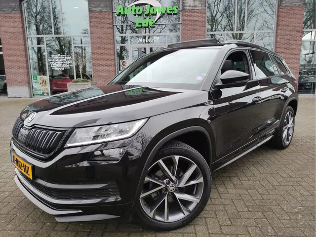 Zeer complete en sportieve ŠKODA Kodiaq 1.5 TSI DSG Sportline Business in stijlvol zwart metallic. Origineel Nederlands geleverd en dealer onderhouden. Deze Kodiaq combineert ruimte, luxe en sportiviteit met de soepele DSG-automaat en krachtige 1.5 TSI motor.Uitgevoerd met fraaie 20 inch lichtmetalen velgen (Vega antraciet polished) en voorzien van hoogwaardige opties voor maximaal comfort.