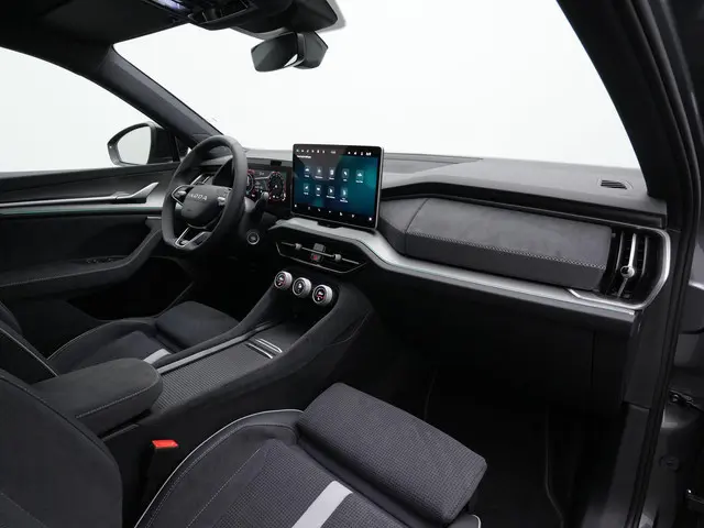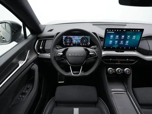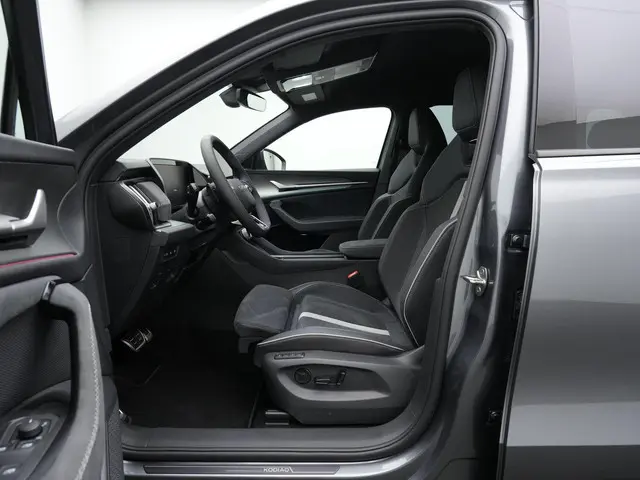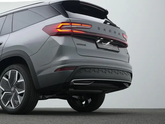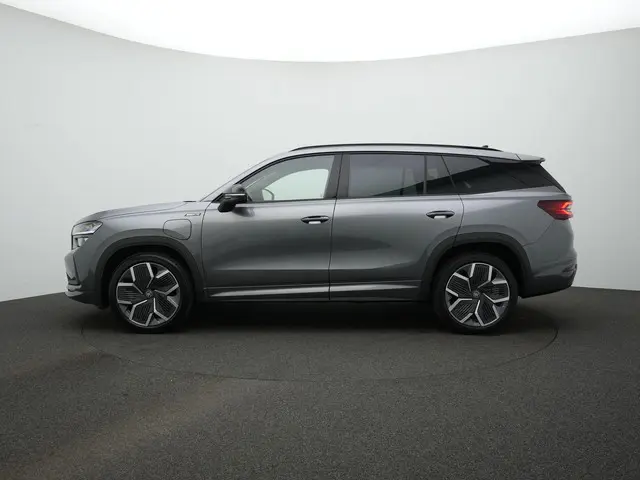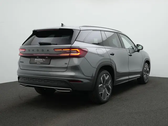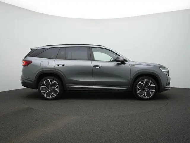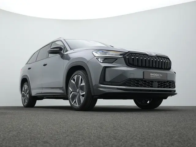 Škoda Kodiaq Sportline iV – krachtige plug-in hybrid met moderne uitstralingDeze Škoda Kodiaq Sportline iV combineert ruimte, sportiviteit en geavanceerde plug-in hybrid technologie in één overtuigend geheel. Uitgevoerd in Graphite Grey metallic met Sportline interieur/exterieur oogt hij strak, dynamisch en eigentijds. De zwarte accenten, 20 inch lichtmetalen velgen ‘Rila Aero’ in antraciet zwart en de hoogglans zwarte details versterken het sportieve karakter zonder in te leveren op comfort. Dit is een SUV die zowel zakelijk als privé indruk maakt.