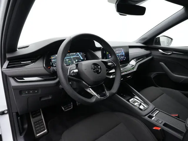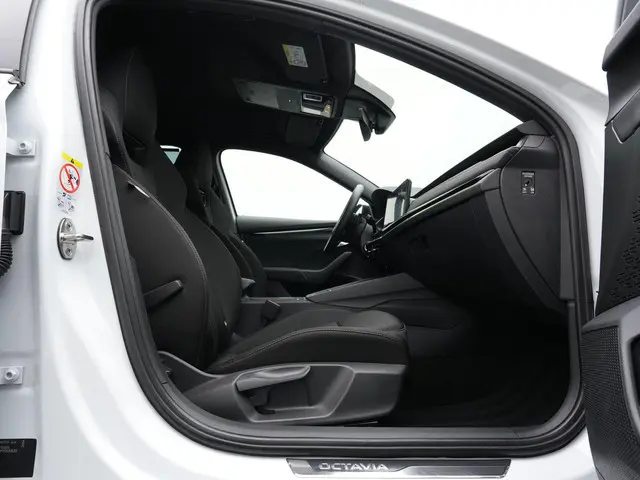 Achter het stuur ervaar je direct het comfort en de verfijning die deze Octavia te bieden heeft. De sportstoelen geven goede ondersteuning, terwijl het verwarmbare stuurwiel en de verwarmbare achterbank zorgen voor extra comfort tijdens koudere dagen. Adaptive cruise control maakt lange ritten ontspannen en overzichtelijk, terwijl systemen als Adaptive Lane Assist en Side Assist actief bijdragen aan veiligheid en rust onderweg. Dankzij de standkachel stap je bovendien altijd in een aangenaam voorverwarmde auto, ideaal voor dagelijks gebruik. Ook praktisch is deze uitvoering volledig doordacht: de elektrisch bedienbare achterklep met Virtual Pedal maakt laden en lossen eenvoudig, en met de achteruitrijcamera en parkeersensoren manoeuvreer je moeiteloos in iedere situatie.