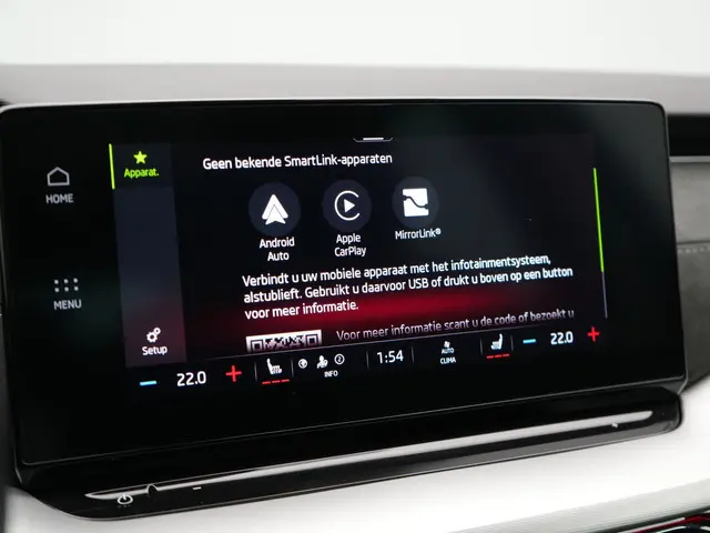 Een gevisualiseerd overzicht van alle belangrijke functies wordt geleverd door het digitale dashboard. Adaptive cruise control is een comfortabele en veilige optie. Het systeem reguleert de snelheid en houdt automatisch afstand tot uw voorligger. Spraaksturing betekent dat u verschillende functies met uw stem kunt bedienen. Via uw smartphone en Connected Services checkt u eenvoudig de belangrijke functies van de auto, overal en altijd. Zorgeloos en geconcentreerd rijden? Het full map navigatiesysteem wijst de weg! De uitrusting van deze ŠKODA is met WIFI-hotspot, automatische airconditioning, schakelpaddles aan het stuur, draadloos opladen, DAB ontvangst en parkeersensoren achter behoorlijk compleet.