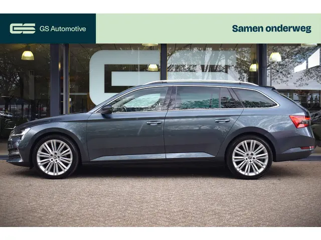 U rijdt gemakkelijk, comfortabel en zonder zorgen met deze Skoda Superb Combi. Het is een auto van het bouwjaar 2020. Twijfelt u nog tussen rijden op benzine of elektrisch? Niet nodig. Deze hybride Skoda Superb Combi doet het allebei. Voor het pittige uiterlijk én goed gesteund zitten zorgen de sportstoelen. De bagageruimte is toegankelijk via een comfortverhogende elektrische achterklep. Een verwarmd stuurwiel overbodige luxe? Wacht maar tot het kouder wordt! Waarom zou je alleen voorin behaaglijk mogen zitten? Daarom is er óók een verwarmde achterbank. Opvallend is de geavanceerde matrix LED-verlichting met daglichtkwaliteit. De koplampen dimmen automatisch het deel van de lichtstraal waar voor- of tegenliggers in rijden. De overige segmenten blijven aan en verlichten de weg maximaal. Tot de uitrusting behoren ook 19 inch lichtmetalen velgen, sportonderstel, extra getint glas, in delen neerklapbare achterbank, LED-achterlichten en verwarmde ruitensproeiers.Snelheid, omgevingsinfo, navigatie en communicatie... Het digitale dashboard geeft alles realtime weer. Met de hulp van vier camera's, biedt de 360 graden camera op deze auto een panoramisch zicht, wat bijzonder nuttig is bij het parkeren en manoeuvreren. Adaptive cruise control is veilig en comfortabel. De snelheidsregelaar houdt automatisch afstand tot het voertuig dat voor u rijdt. Filerijden zal nooit een pretje worden. Maar met de file assistent wordt het wél relaxter. Deze geavanceerde optie zorgt dat u automatisch de juiste afstand tot de voorligger houdt en remt bovendien als de rij tot stilstand komt. Ingebouwde spraakbediening maakt het mogelijk om de auto te bedienen zonder dat uw aandacht wordt afgeleid. Ook connected drive services, premium audiosysteem, navigatiesysteem met harde schijf, achteropkomend verkeer waarschuwing, automatische airconditioning en draadloos opladen horen tot de voorzieningen op deze auto.