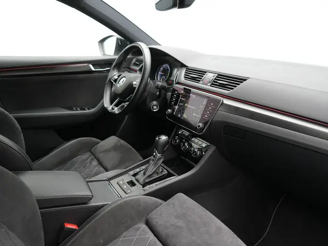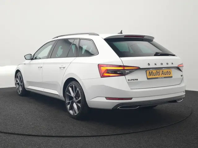 ŠKODA Superb Combi 1.4 TSI iV Sportline Plug In Hybrid 218pk Dealer O.H PHEV | Trekhaak Af Fabriek | Adaptive Cruise | Alcantara Sportstoelen Memory & Verwarmd | Canton Audio | Apple Carplay | Stuur Verwarmd | Keyless | Sfeerverlichting | Navigatie | DAB |Dit is een auto die is ontworpen voor uw comfort. Deze ŠKODA Superb Combi van het bouwjaar 2021 heeft 87419 kilometer op de teller staan. We weten het: benzinerijden is een dure grap. Elektrisch heeft de toekomst. Met de hybride motor van deze ŠKODA Superb Combi heeft u de keuze: elektrisch als het kan, benzine als het moet. Dankzij de elektrische stoelbediening is het gemakkelijk om de optimale zitpositie te vinden. Een praktische extra is de elektrisch bedienbare achterklep die opent en sluit met een druk op de knop. Het verwarmbare stuurwiel is een teken van ultieme luxe. Deze voorziening is een topklasse auto waardig. Met matrix LED-verlichting rijdt u eigenlijk altijd met groot licht, dus maximaal zicht. Toch is verblinden er niet bij, want het systeem regelt de verlichting zo dat tegenliggers er geen last van hebben. Bij de rijke uitrusting horen ook 19 inch lichtmetalen velgen, sport line onderstel, zwarte hemelbekleding, donker getint glas achter, in delen neerklapbare achterbank en LED-achterlichten.