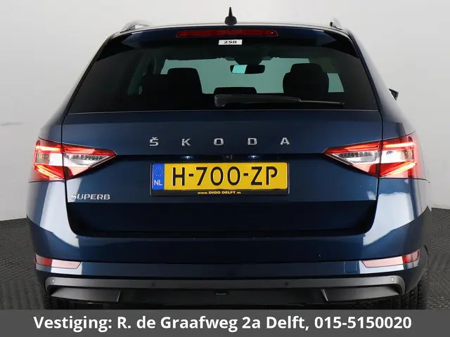 Zakelijk rijden wordt een stuk prettiger met deze Skoda Superb Combi. Met zijn benzinemotor en automatische transmissie is dit een prima auto voor nog vele kilometers. Deze Skoda Superb Combi legt bestuurder én bijrijder compleet in de watten met de verwarmbare voorstoelen. Op gure dagen is het ook achterin heerlijk bijkomen op de verwarmde achterbank. Bij de rijke uitrusting horen ook 17 inch lichtmetalen velgen, LED koplampen, donker getint glas achter, in delen neerklapbare achterbank, LED-achterlichten en verstelbare lendensteunen.