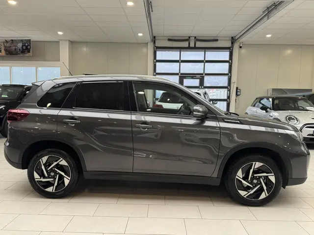 De Suzuki Vitara 1.5 Hybrid Style uit 2025 is een stijlvolle en moderne SUV die alles biedt wat je nodig hebt voor een comfortabele en veilige rijervaring. Met zijn hybride benzine aandrijving combineert deze auto efficiëntie met kracht, terwijl de grijze kleur en metallic lak zorgen voor een tijdloze uitstraling op de weg.Wat deze Suzuki Vitara echt bijzonder maakt, zijn de vele handige opties die het rijden plezieriger maken. Zo beschikt deze SUV over een handige achteruitrijcamera die het parkeren en manoeuvreren vereenvoudigt. Daarnaast is de auto uitgerust met Apple Carplay/Android Auto, waardoor je naadloos verbinding kunt maken met je smartphone en genieten van je favoriete muziek en apps.