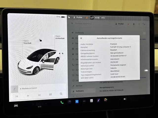 Voertuiggegevens van deze Tesla Model 3
