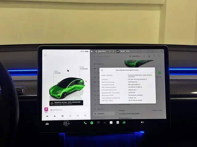 Voertuiggegevens van deze Tesla Model 3