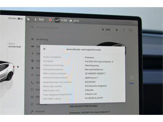 Voertuiggegevens van deze Tesla Model 3