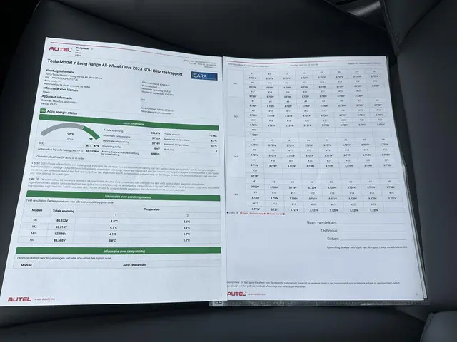 Wij hebben de auto bij binnenkomst volledig gecontroleerd. Daarbij hebben wij ook de SOH (State of Health) getest; deze bedraagt een nette 96%.