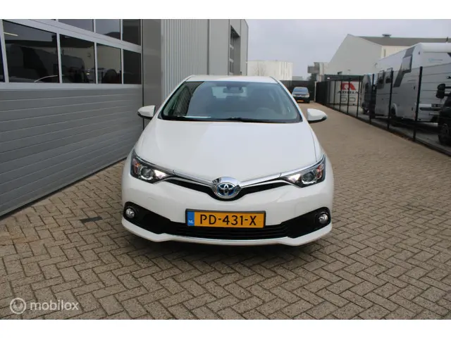 Hier staat een zeer nette Toyota Auris Hybrid met de juiste uitstraling: