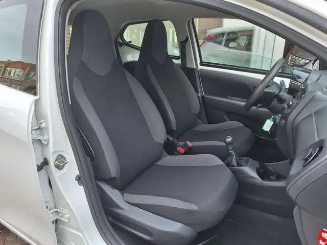 Jaloersmakend behendig in de drukke stad, wendbaar op de vierkante meter en toch een royaal ruimtegevoel voor alle inzittenden. Wat een heerlijke compacte auto deze dealer onderhouden Toyota Aygo van het bouwjaar december 2019. In deze auto vindt u een zeer zuinige benzinemotor en een handgeschakelde vijfversnellingsbak. U wordt in deze auto ook getrakteerd op LED-dagrijverlichting, autotelefoon met bluetooth, multimedia systeem, elektrische ramen, getint glas, neerklapbare achterbank en LED-achterlichten.Door de bluetooth met audiostreaming ontvangt het audio-installatiesysteem muziek van elk device. Aan boord van deze Toyota Aygo is een achteropkomend verkeer waarschuwing voor extra veiligheid. In de zomer zit u ontspannen achter het stuur dankzij de ingebouwde airconditioning. Extra opties op deze auto zijn: centrale deurvergrendeling met afstandsbediening, boordcomputer en verstelbaar stuur.